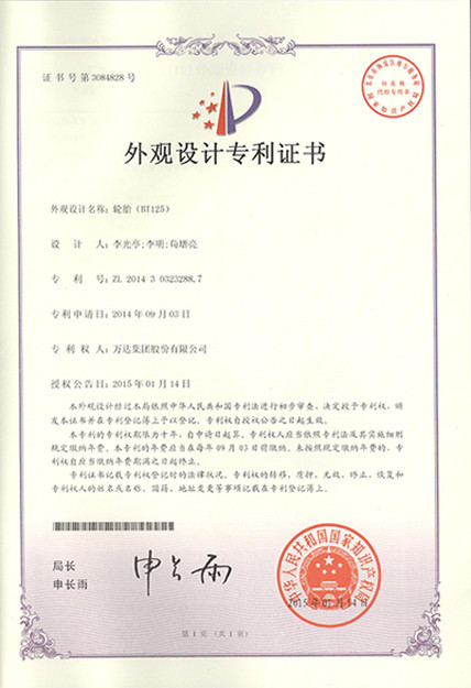 山東萬達寶通輪胎有限公司注重產品研發和技術保護,積極開展專利申請工作,現有各類有效專利證書83件。